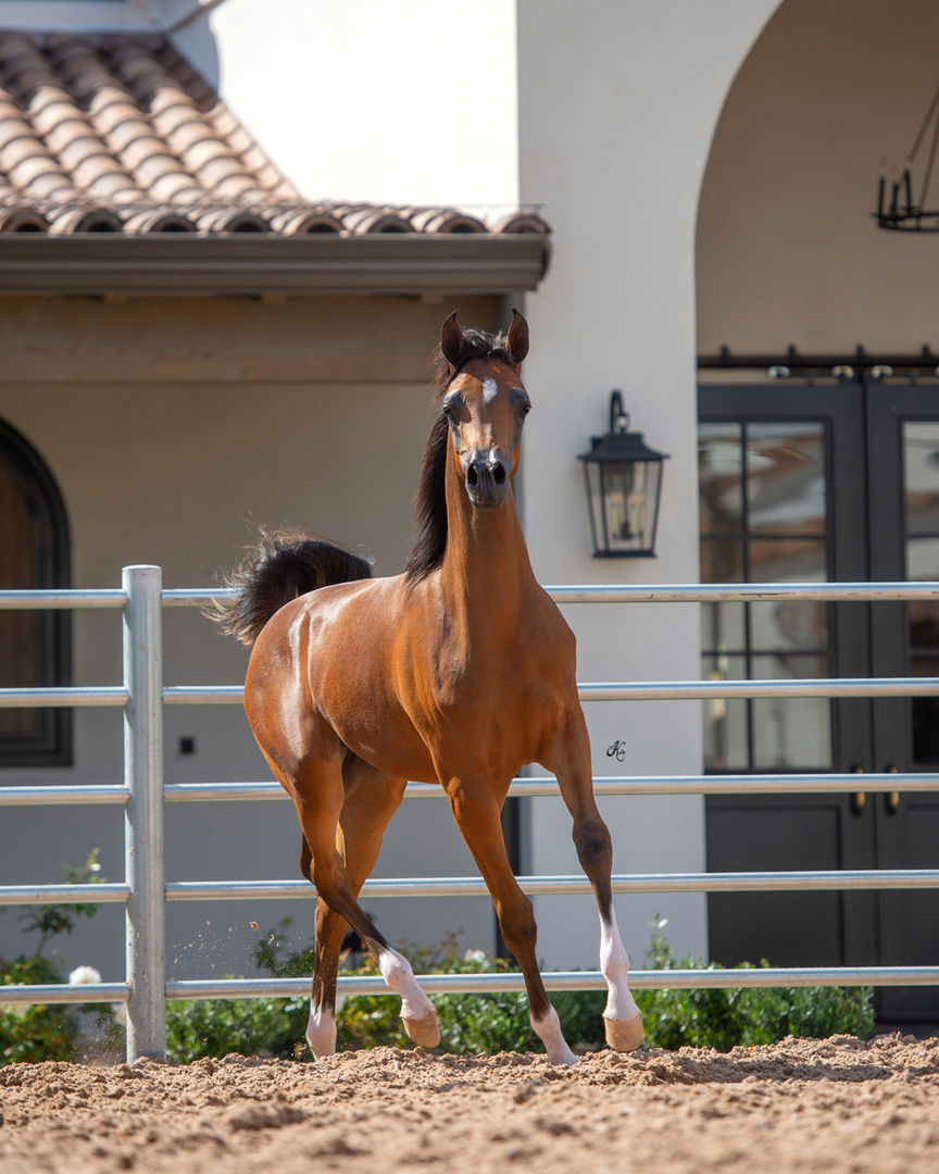 Al Noor Miralena represents the best of three iconic female breeders: Sigi Siller, Lenita Perroy, and Sheila Varian. In many ways, she redefines feminine type with bulging, wide-set eyes, a flat forehead, a true teacup muzzle, and facial curves that leave you breathless. That feminine type continues to the tip of her tail. What's more, she is a kind, gentle and thoughtful filly. Additionally, she was the first foal conceived by Om El Maximus, as well as his first filly to hit the ground, leaving an undeniable mark on behalf of her sire.